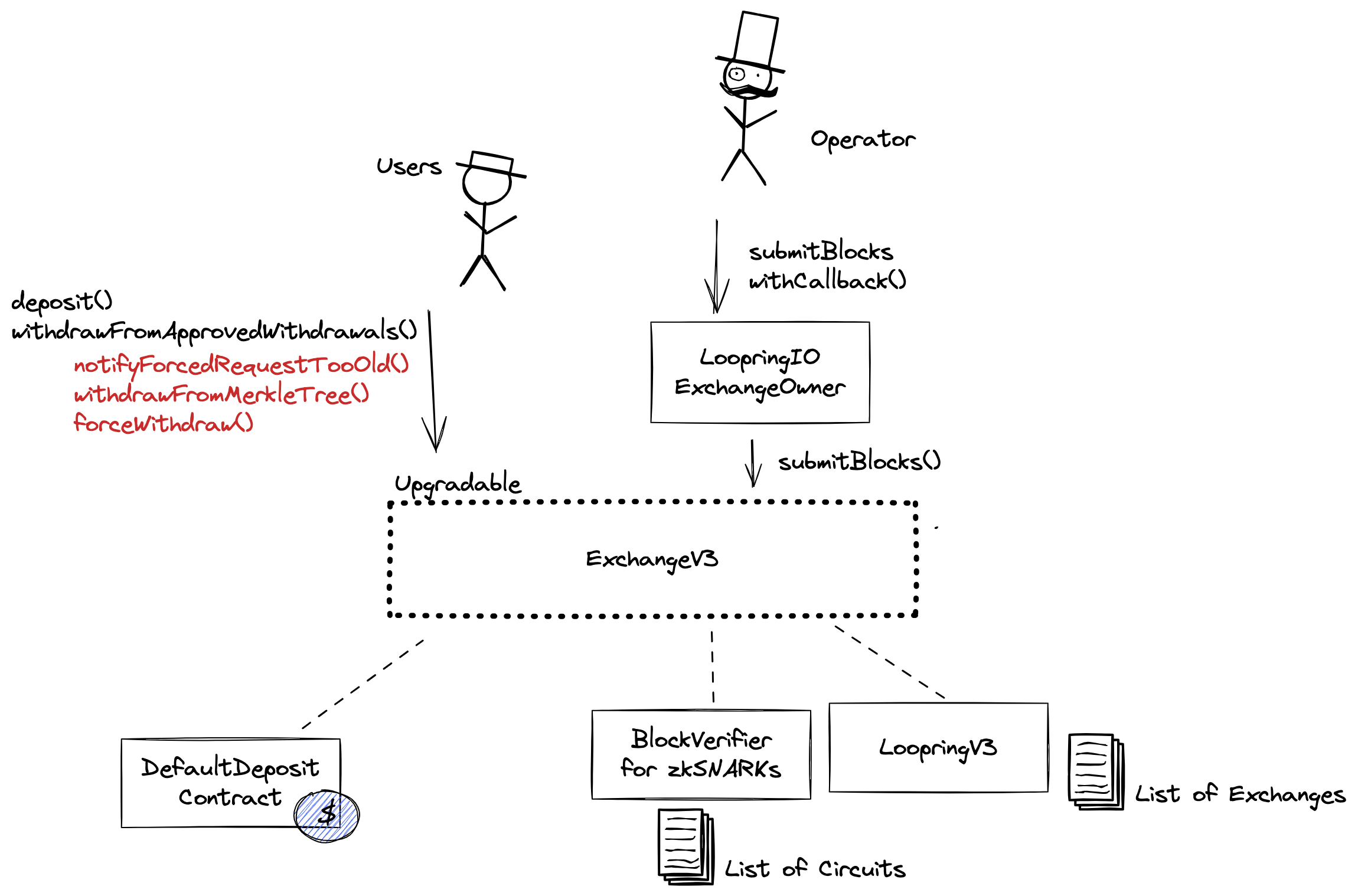 Actor allowed to upgrade the ExchangeV3 and DefaultDepositContract contracts. This address is the owner of the following contracts: LoopringIOExchangeOwner, LoopringV3, DefaultDepositContract. Can add or remove block submitters. Can change the forced withdrawal fee up to 0.25 ETH. Can change a way that balance is calculated per contract during the deposit, allowing the support of non-standard tokens.